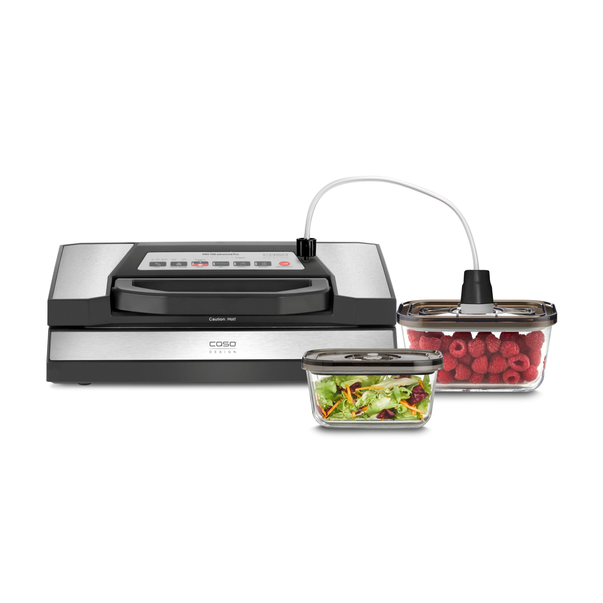 Vakuumierte Lebensmittel bleiben ohne Konservierungsstoffe bis zu 8x länger frisch – ideal für Fleisch, Fisch, Obst, Gemüse und vieles mehr. Mit dem VRH 700 advanced Pro von CASO Design ist das Vakuumieren schnell und einfach möglich, denn das hochwertige Vakuumiersystem bietet zahlreiche Funktionen für verschiedene Anwendungen.