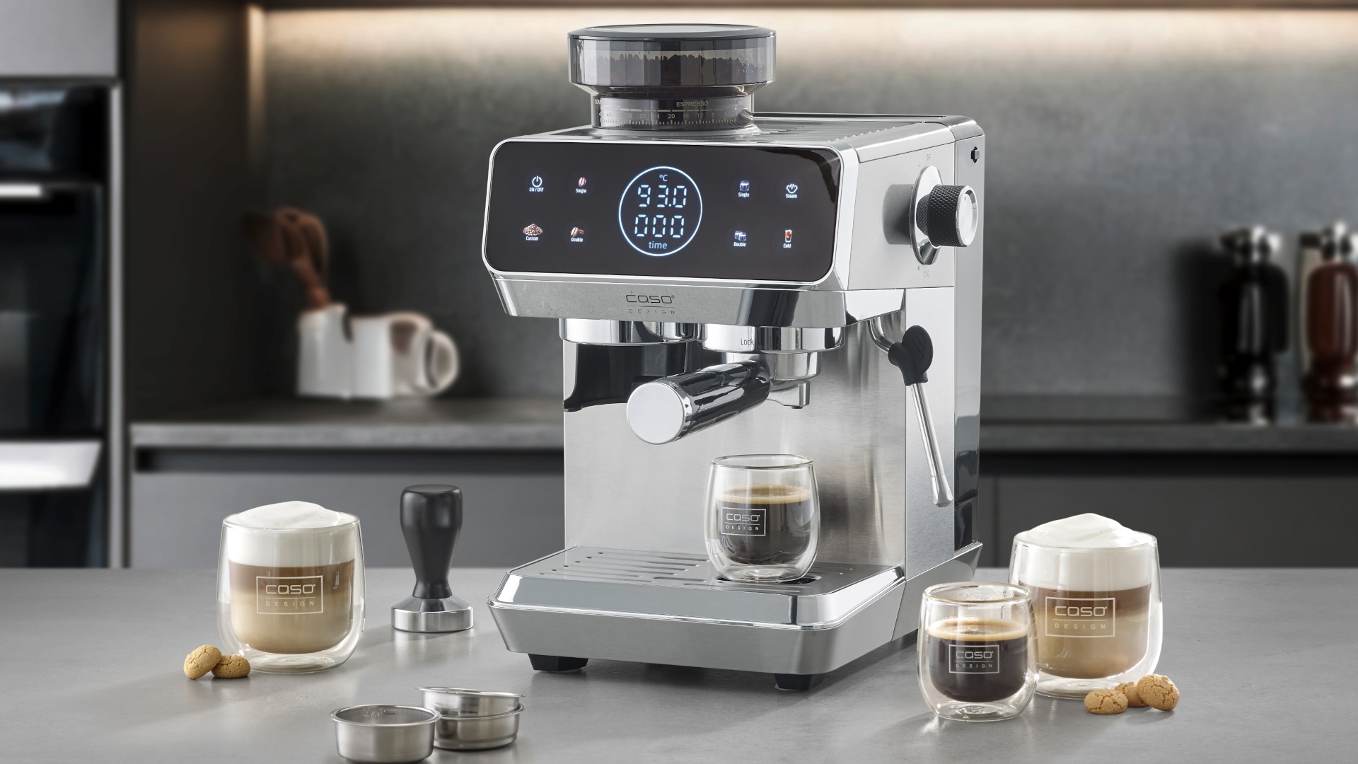 CASO Design: Siebträgermaschine mit Kegelmahlwerk