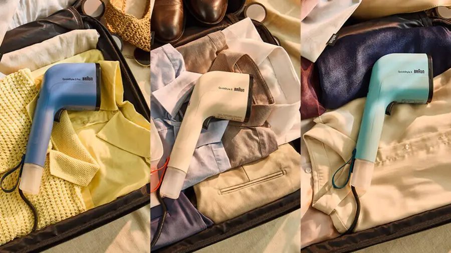 Die Braun QuickStyle 3 Dampfglätter sind seit Oktober 2025 im Handel und online erhältlich. Das Modell GS 3012 BG in Beige wird mit einer hitzebeständigen Tasche und einem Fusselentferner angeboten. Der GS 3013 GR in Grün umfasst zusätzlich einen Bürstenaufsatz. Die Pro-Version, der GS 3024 BL in Blau, bietet neben hitzebeständiger Tasche, Fusselentferner und Bürstenaufsatz einen zweiten, größeren Wassertank mit 120 ml Fassungsvermögen für längere Glätt-Sessions.