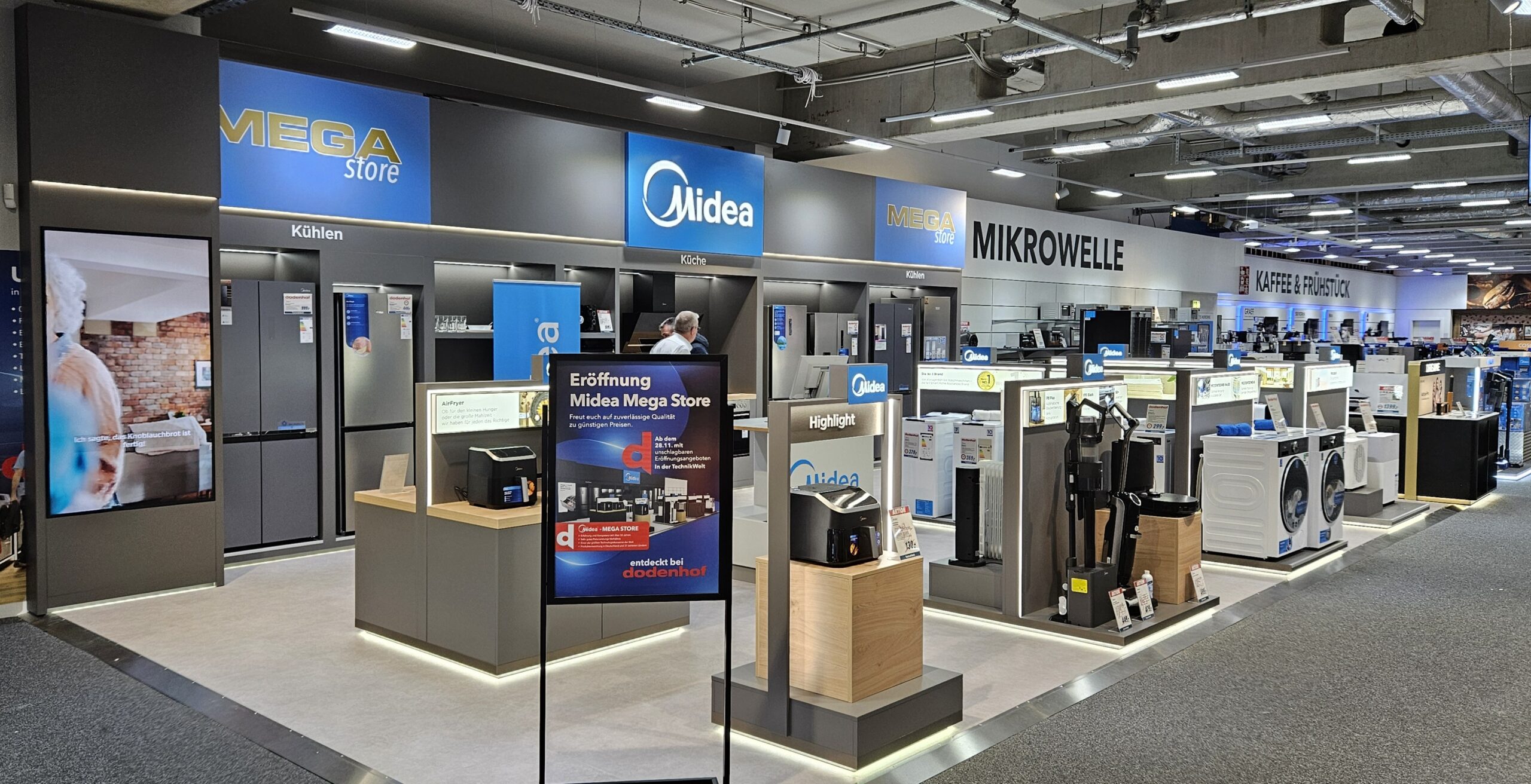 „Mit dem Midea MEGA-Store – unserer deutschlandweit ersten Shop-in-Shop-Fläche – schaffen wir ein Erlebnis, das weit über eine reine Präsentation hinausgeht. Kunden können unsere Geräte direkt ausprobieren, sich beraten lassen und die Vielfalt unseres Sortiments live erleben. Zudem bieten wir gemeinsam mit der TechnikWelt von dodenhof, unserem Partner vor Ort, erstklassige Angebote für Endkunden sowie zur Eröffnung ein besonderes Schmankerl für alle Besucher unserer Fläche. Wir zeigen, dass Midea als 360-Grad-Anbieter sämtliche Haushaltsbereiche mit innovativen Lösungen abdeckt“, erklärt Jochen Schäfer, Head of Marketing bei Midea.