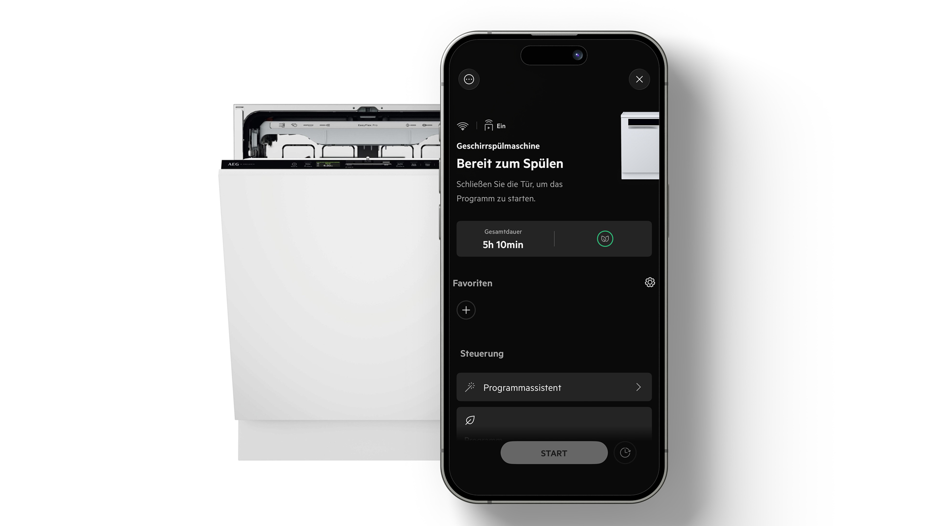 Gewiss: Man kann die GI921OX2TF auch per App verbinden und so alles Wesentliche einsehen. Mit der App, die ab Android 11.0 und ab iOS 17.0 verwendbar ist, lässt sich bspw. auch der volle Spülvorgang einschließlich sämtlicher Spülparameter voreinstellen und das Modell im Weiteren ans Werk schicken, in der Theorie auch von außer Haus. Das kann in manchen Situationen elementar sein: Wenn man bspw. den Start des Spülprogramms vor dem Verlassen des Hauses versäumen sollte, dann kann man dies ohne sonderlich viel Mühe per App nachholen, auch aus Bus, Bahn usw. heraus.