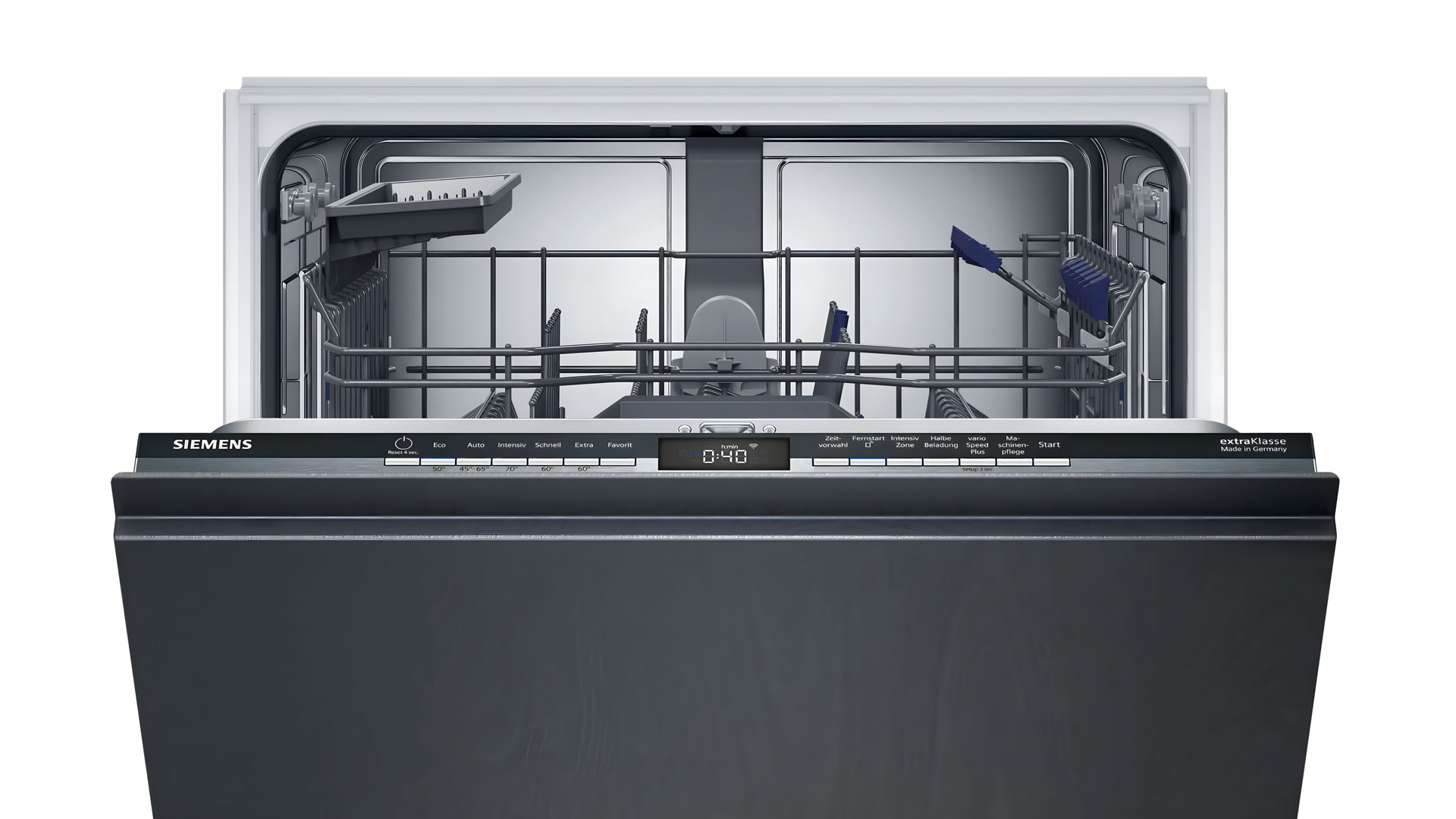 Der Siemens SN63EX02BD stellt sich spülleistungsmäßig als sehr ähnlich dar, lässt aber Spielraum beim Einräumen des Geschirrs vermissen: Das ist der Grund, aus dem man bspw. im Spülprogramm AUTO 45–65° einen Großteil aller Spuren vom Geschirr abspülen kann, in den äußeren Ecken des Spülraums aber noch ein paar minimale Makel erkennen kann (vor allem in den Mulden von Schalen, Schüsseln usw.). Eine Spezialreinigungszone wie bei den Geschirrspülern von AEG oder Bosch ist leider nicht vorhanden; dies kann bloß in Teilen durch die Option INTENSIVZONE kompensiert werden.