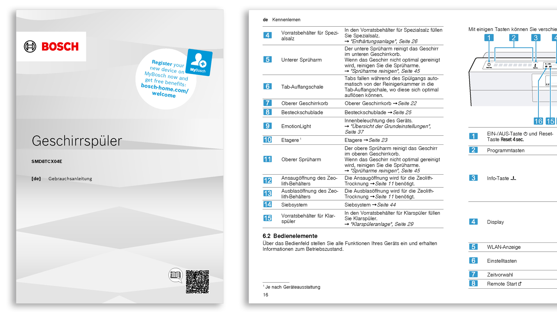 Wir haben hier vor allem das Ein- und das Wiederausräumen des Geschirrs beurteilt. Dabei wurde auch ermittelt, wie sich der Modellinnenraum an die Größe des zu spülenden Geschirrs anpassen lässt: Die Spülkörbe sollten nicht nur der Höhe nach verstellbar sein, sondern auch mit verschiedenen, aus- & einklappbaren Haltern versehen worden sein. Auch die Maße, die Position und die Erreichbarkeit des Tastenpanels aus der Perspektive von Rechts- sowie Linkshänderinnen & -händern wurden hier beurteilt. Während des Tests wurde nicht nur die Spülleistung eines jeden einzelnen Spülprogramms erhoben (s. o., Funktionalität | 60 %): Wesentlich war vielmehr auch, ob und in welchem Maße die Spülprogramme noch mit weiteren Funktionen verbunden werden können. Schließlich wurde die deutschsprachige Fassung der Bedienungsanleitung von uns nach ihrer äußeren und inneren Gestaltung benotet: Sie muss in verständlicher Art und Weise alle wesentlichen Themenkreise rund um das Modell abhandeln und durchschnittliche Verbraucherinnen & Verbraucher in den Stand versetzen, das Modell bestimmungsgemäß in Betrieb zu nehmen und während des Betriebs zu bedienen.