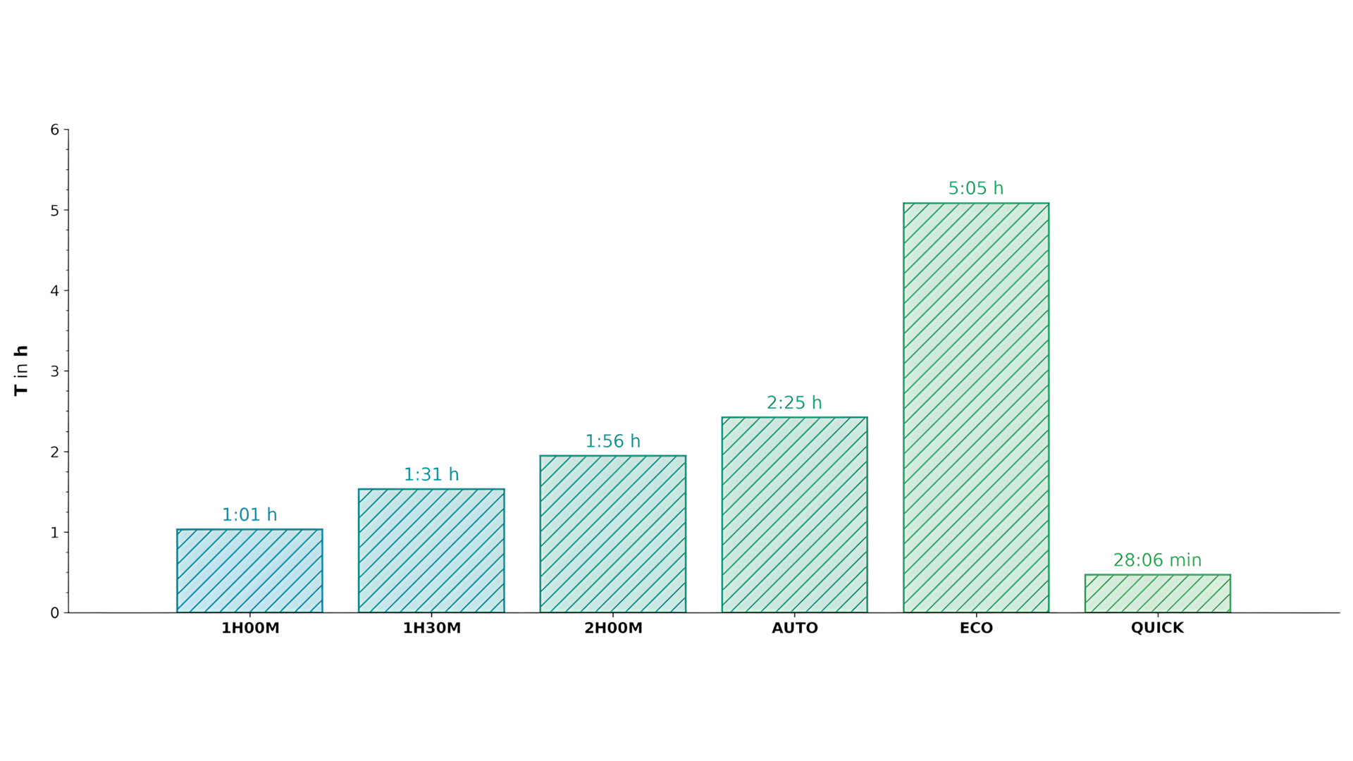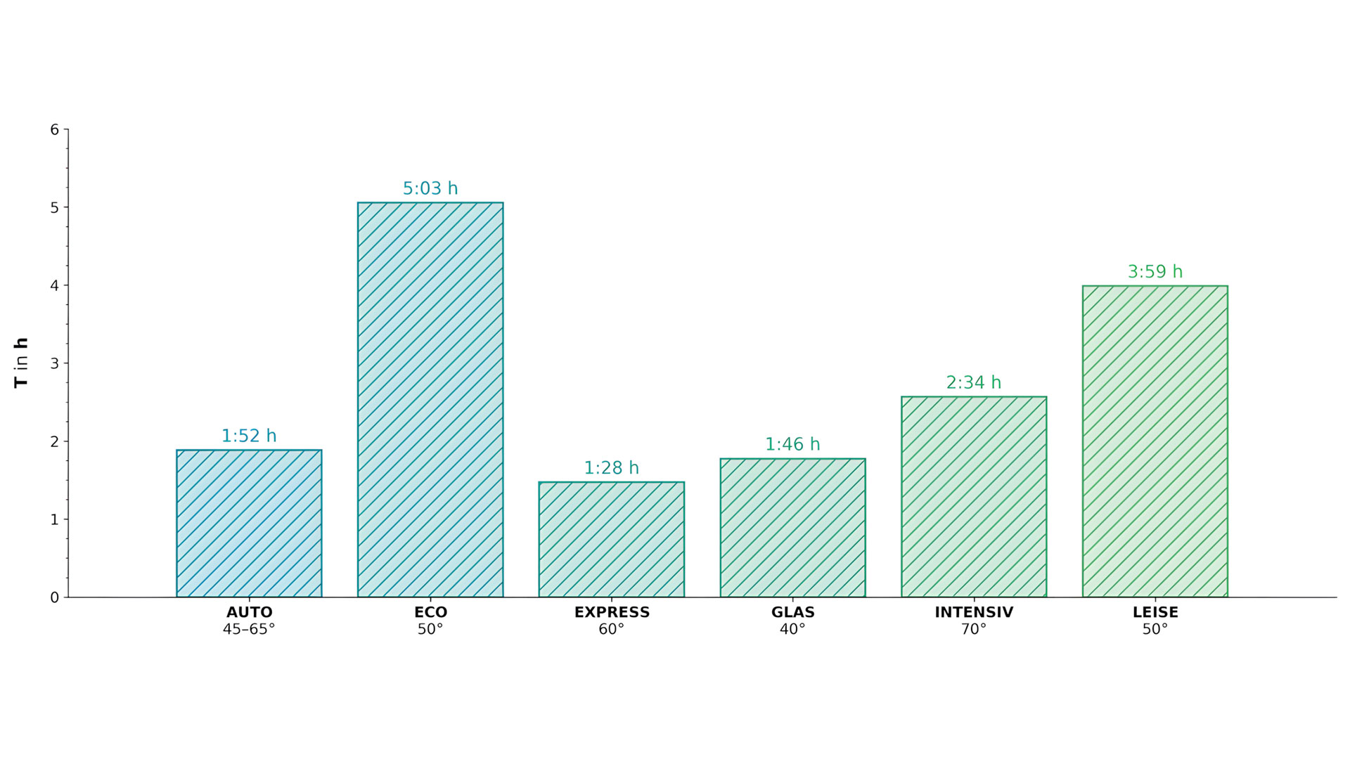 - Spülprogramme im Voraus planbar (in 01:00 – 24:00 h)