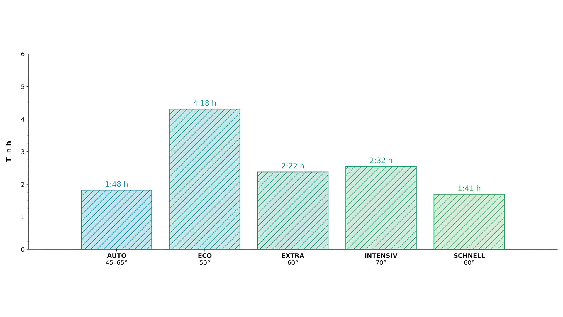 6 (AUTO 45–65°; ECO 50°; EXTRA 60°; INTENSIV 70°; FAVORIT; SCHNELL 60°) |