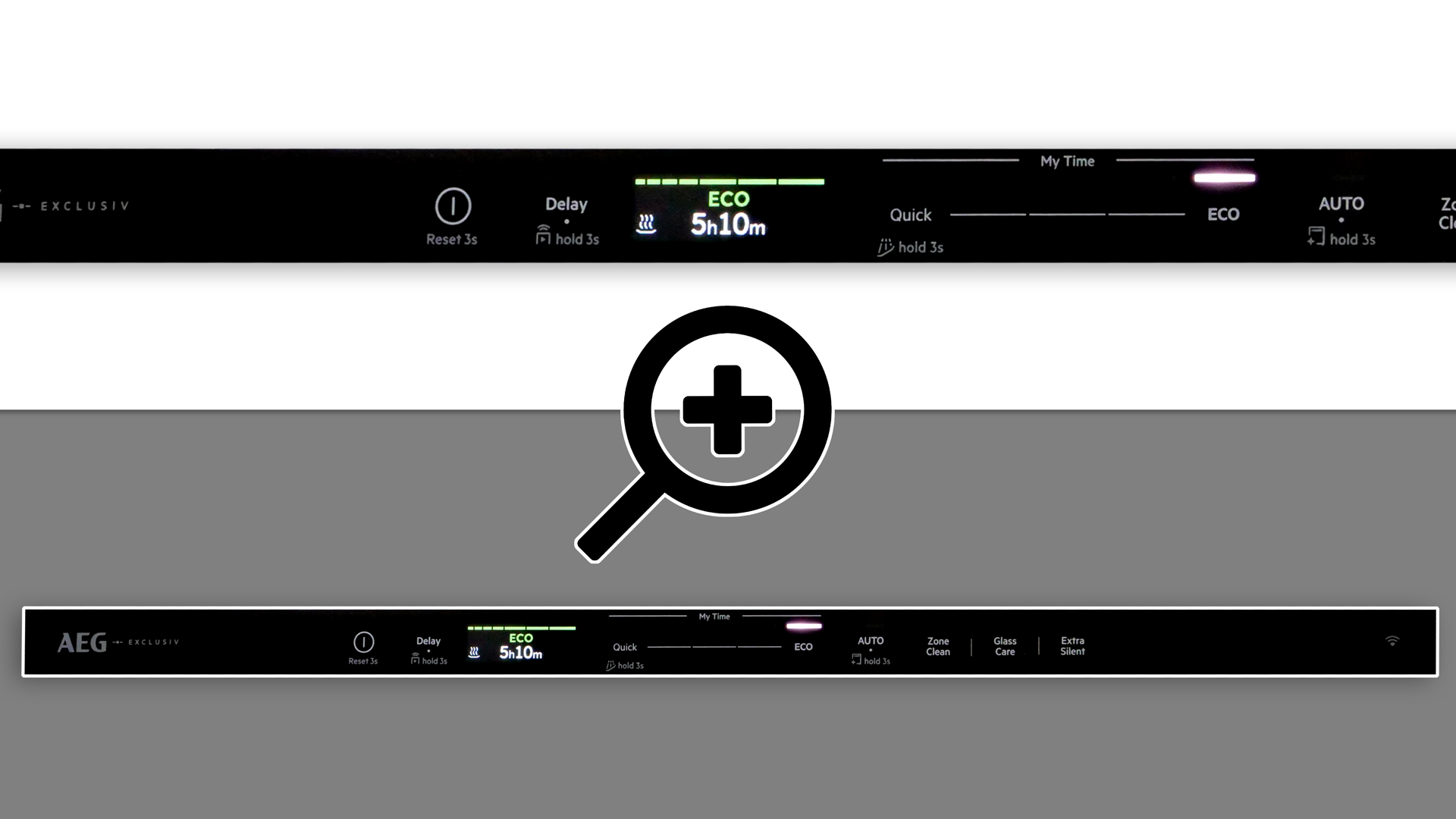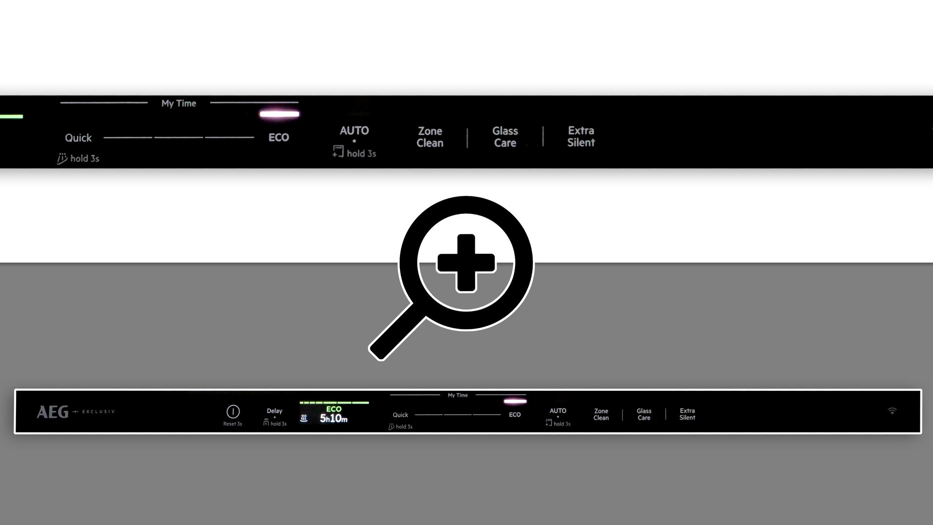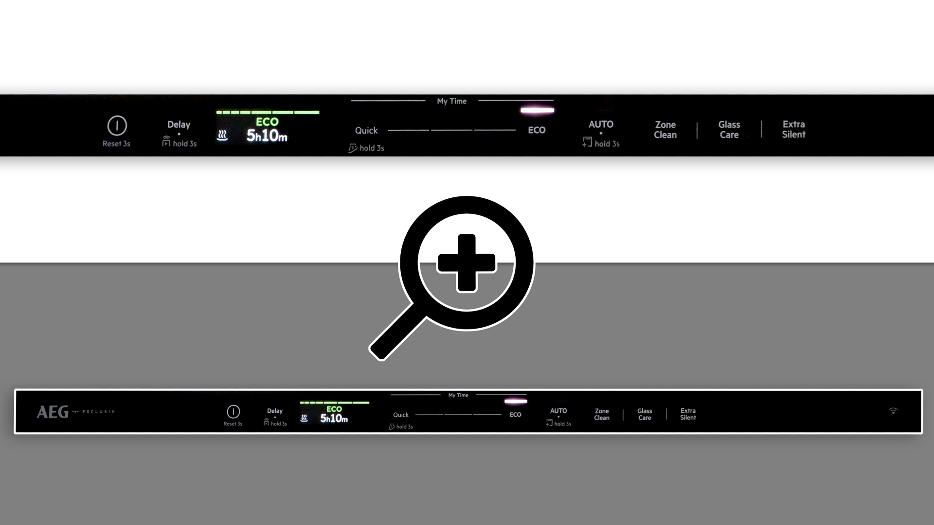 Der Bedienungsvorgang ist bei manchen Geschirrspülern leicht-, bei anderen Geschirrspülern wiederum schwergängig. Gerade der AEG GI9210X2TF kann eine enorme Flexibilität erschließen, weil viele Teile im Spülraum voll anpassbar sind. So lässt sich bspw. der Oberkorb per QUICKLIFT um ≈ 2,6 cm anheben bzw. absenken; auch sind spezielle Fixierelemente vorhanden, an denen sich Gläser sinnvoll sichern lassen (SOFTGRIPS bzw. SOFTSPIKES); schließlich ist der Unterkorb mit stabilen Haltern versehen, an denen man auch ausladendes Geschirr verankern kann. Hinzu kommt ein hellweißes Licht, das vor allem während des abendlichen Gebrauchs sehr wertvoll ist. Das Bedienpanel ist von einer soliden Qualität und lässt nur in Teilen ein paar Texte vermissen. Über den Status unterrichtet das Modell von AEG per Bodenprojektion (TIMEONFLOOR).