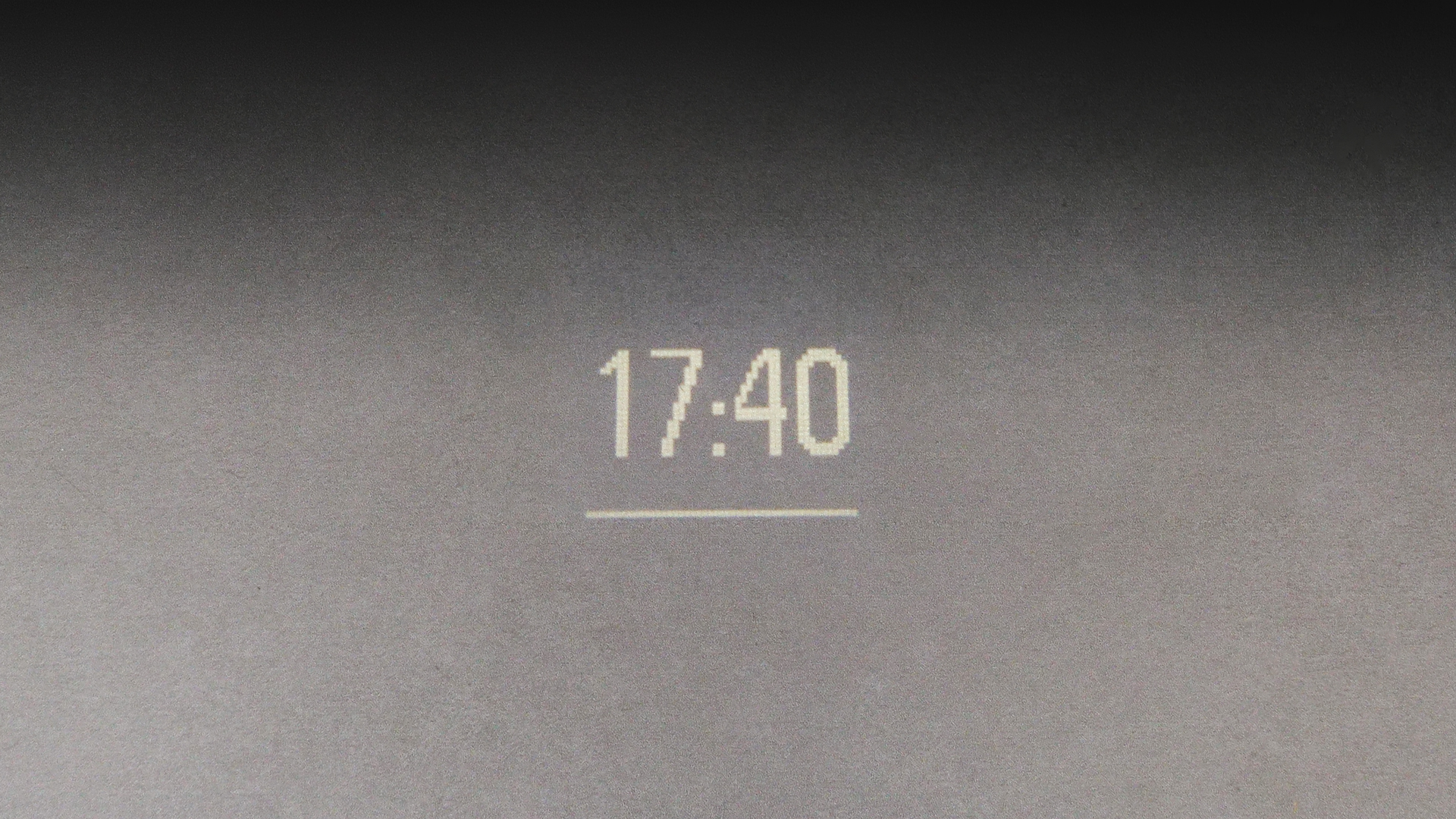 Der seitlich neben dem hiervor angesprochenen Teil des Bedienpanels erkennbare Bildschirm ist von einem sehr simplen, aber vollkommen übersichtlichen Stil: Hier stellt das Modell alles dar, was Verbraucherinnen & Verbraucher während des Bedienens wissen müssen. So ist vor allem ablesbar, wann das jeweilige Spülprogramm voraussichtlich vorüber sein wird. Das ist wertvoll, denn: So lässt sich schon während der Wahl des Spülprogramms vorhersehen, wann das Geschirr wohl wieder makellos sein wird, wann man es also aus dem Spülraum der GI921OX2TF herausholen muss. Die Größe des Screens ist vollends ausreichend: Wir haben ihn aus allen Winkeln ablesen können, auch aus mehr als ≈ 1 m.