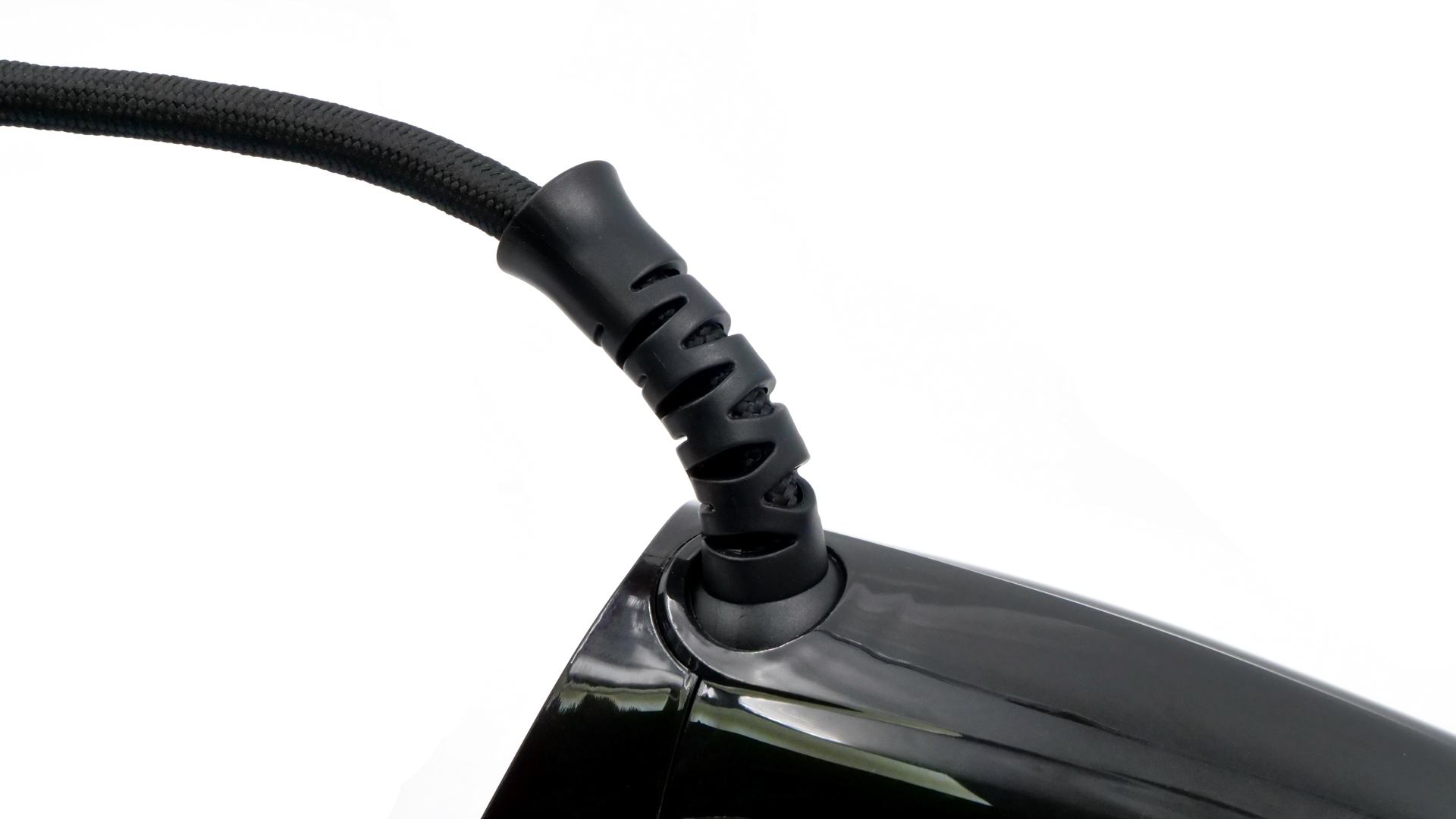 Durch das hier vorhandene Stromkabel wird sehr viel Spielraum (≈ 1,9 m) erschlossen: So kann man sich seinen Textilien in wirklich allen Teilen des Hauses widmen; ein Stromanschluss sollte in ≈ 1,9 m prinzipiell immer erreichbar sein. Was sich allein verbessern ließe: Dem Modell wurde keinerlei Klettverschluss verliehen, sodass sich das Stromkabel leider nicht weiter sichern lässt. Dies aber stellt sich in der Praxis nur sehr selten als Problem dar.