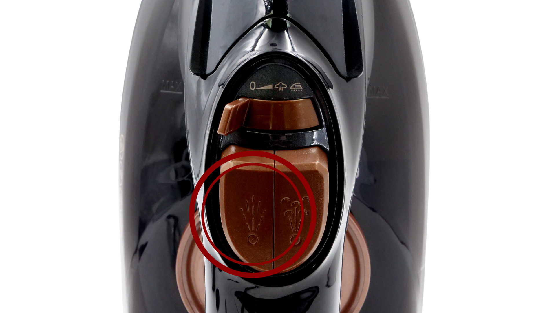 Müssen Textilien aus schwerem Gewebe (wie bspw. Jeans, Leinen usw.) gebügelt werden, wird man während des Bügelvorgangs viel Dampf verwenden wollen. Gerade dann, wenn einzelne Teile des Textils in erheblichem Maße verknittert sind, empfiehlt sich ein punktueller, starker Dampfausstoß: Genau einen solchen kann man durch den Druck der hier erkennbaren Taste verwirklichen.