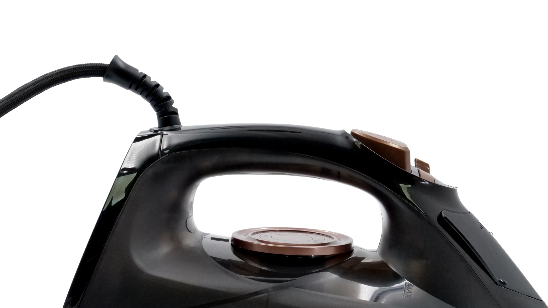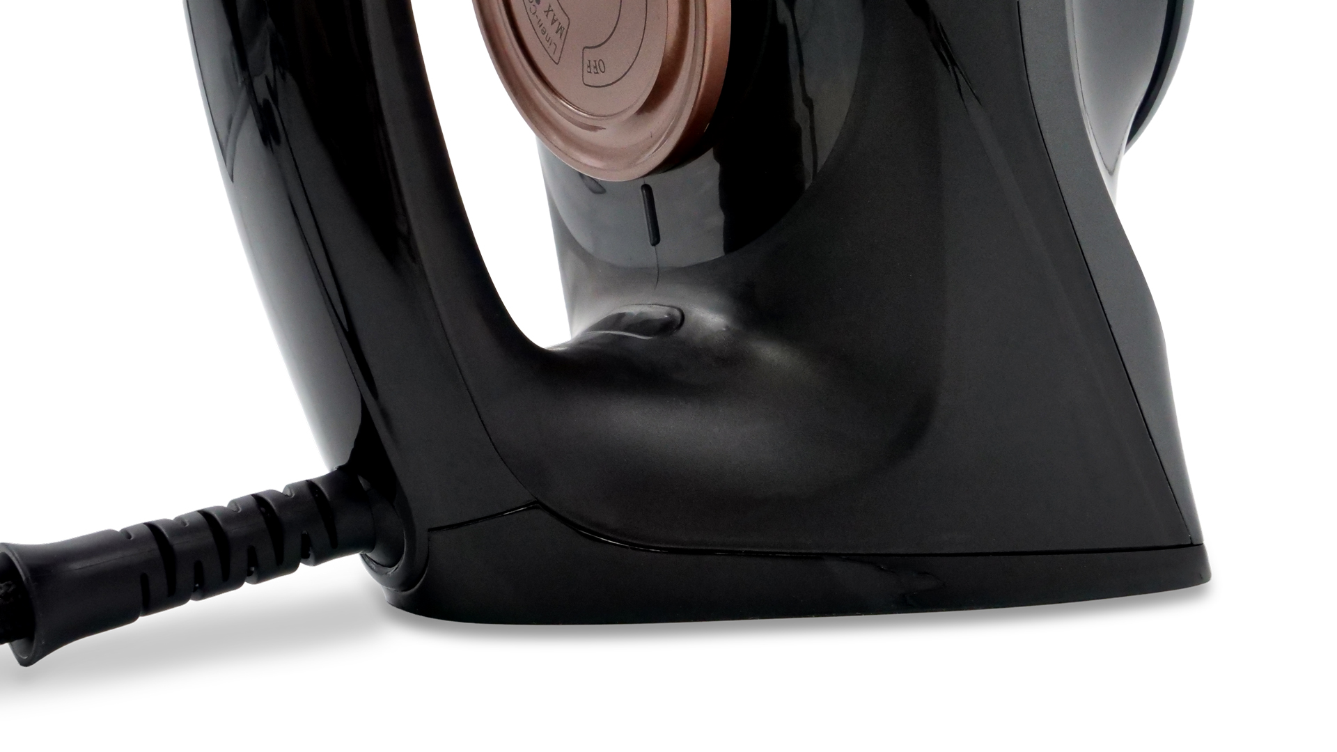 Dem oberen Teil des Steam Iron 322890 wurde ein sehr simples Gelenk verliehen. Dies ist wertvoll, weil das Stromkabel von Werk aus vollkommen starr mit dem Modellkörper verbunden worden ist. Dank des Gelenks kann man es in einer Spanne von ≈ 30° hin und her manövrieren, was während des Bügelvorgangs sehr bequem ist.