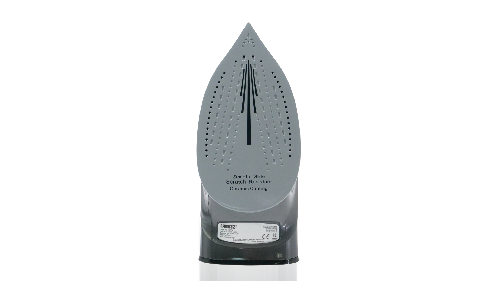 Dem Steam Iron 322890 wurde ein Fuß in Form eines ausladenden Dreiecks verliehen, sodass man es vollkommen sicher vertikal abstellen kann; hier hält es auch maßvolle Stöße aus, ohne dass es sonderlich schnell kippen würde. Dies ist wertvoll: Schließlich kann die Sohle des Modells Temperaturpeaks von ≈ 193,0 °C erreichen; würde man die Sohle in diesem Modus über dem Textil belassen, so würde dies an manchen Materialien wie bspw. Synthetik sicherlich Schäden verursachen.