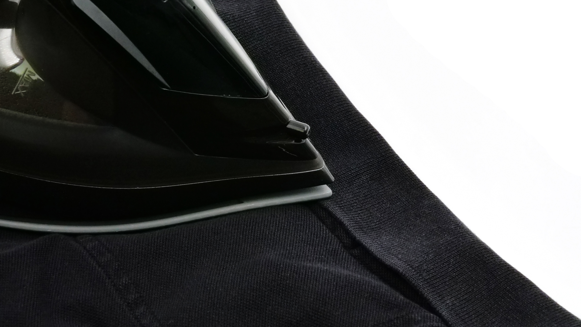 Glücklicherweise ist ausreichend viel Spielraum oberhalb der Sohle des Steam Iron 322890 vorhanden: Muss man das Modell also bspw. an Applikationen heranschieben, die sich ein paar Millimeter vom jeweiligen Textil abheben (also Manschetten & Co.), dann lässt sich dies spielend verwirklichen, ohne dass sich das Modell währenddessen auch nur einmal verhaken würde.