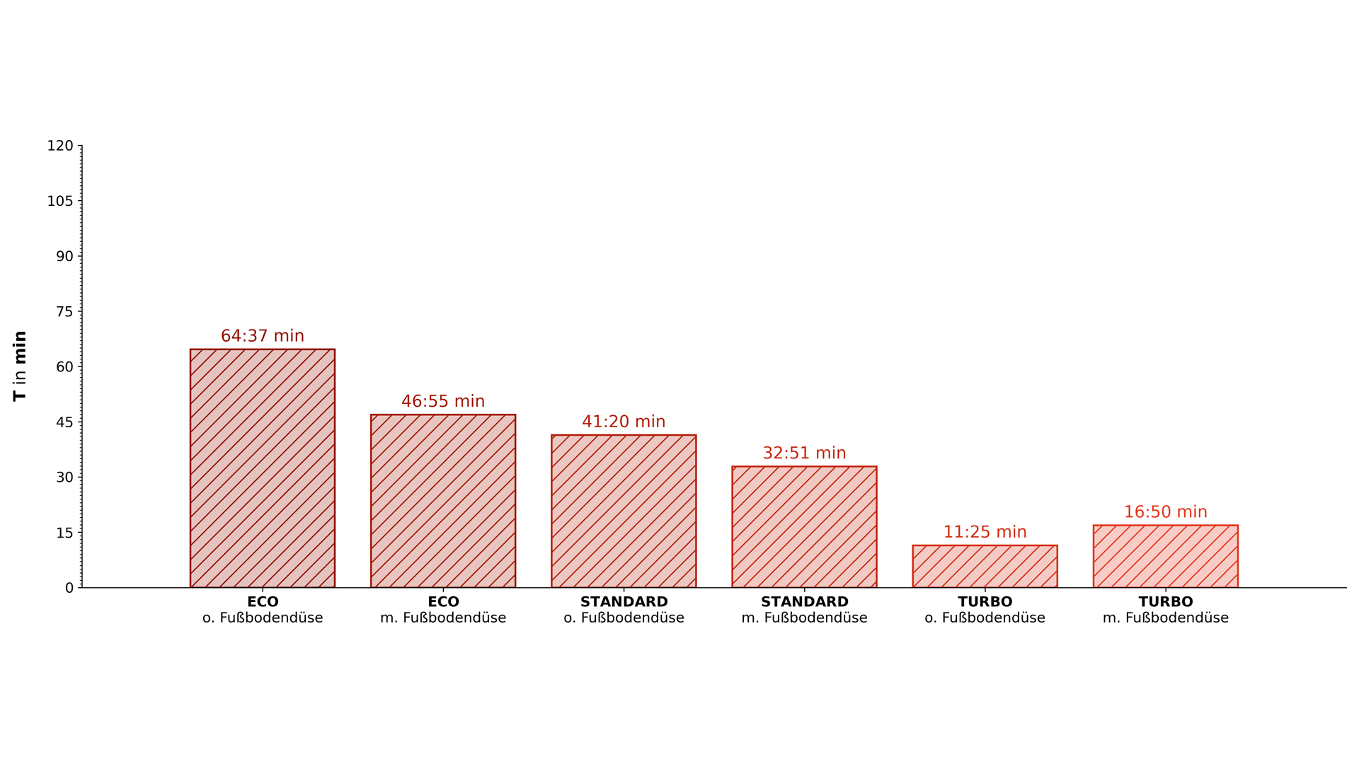 | Arbeitszeit (Tmax, lt. Hersteller im Modus ECO und ohne Fußbodendüse) |