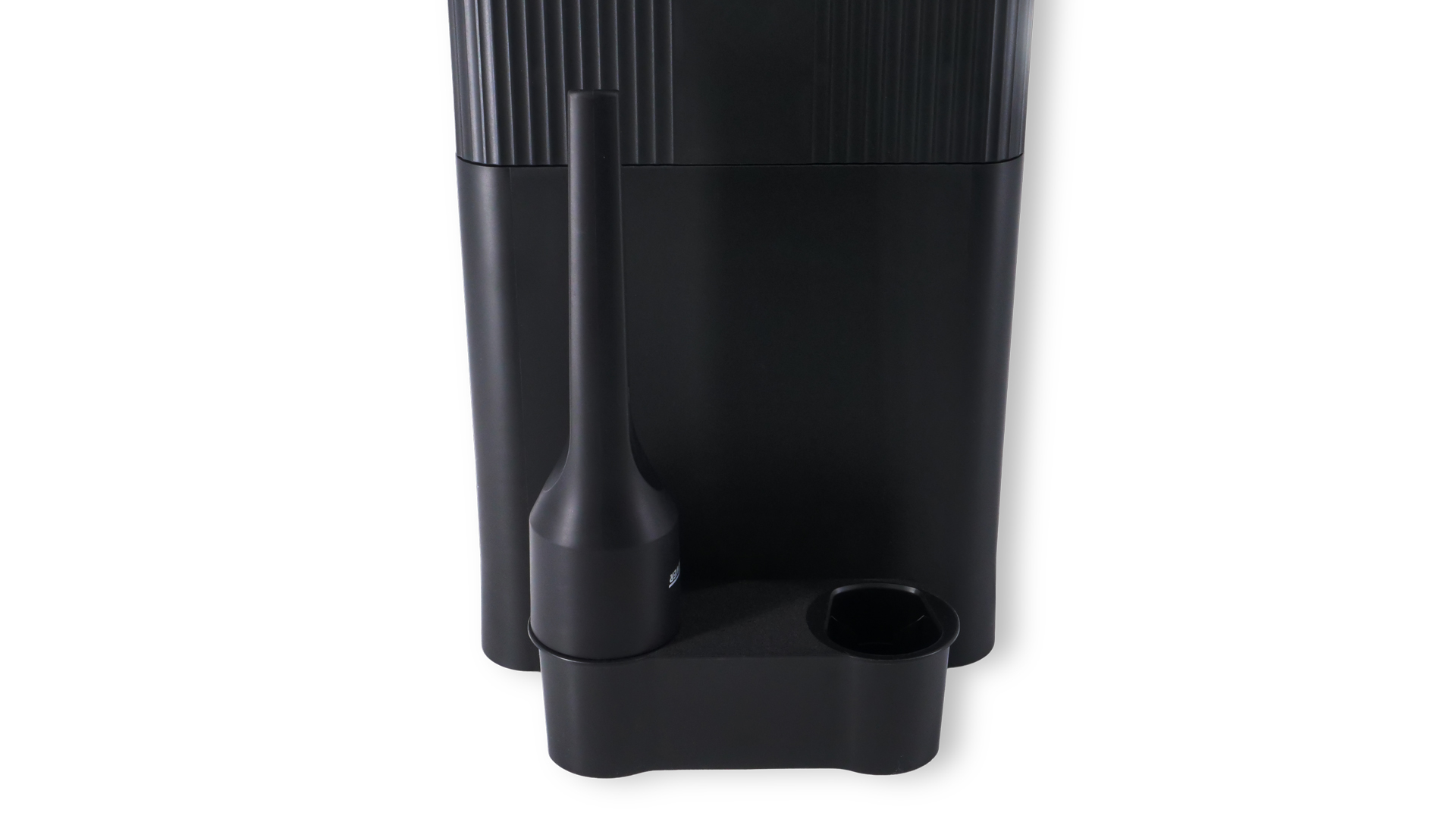 An der Rückseite der Ladestation lässt sich diese Halterung anbringen, in der man zwei Düsen verwahren kann. Dann hat man alle Zubehörteile stets an einem Ort beisammen, sodass man nichts anderswo verstauen müsste, wo es vielleicht verloren ginge.