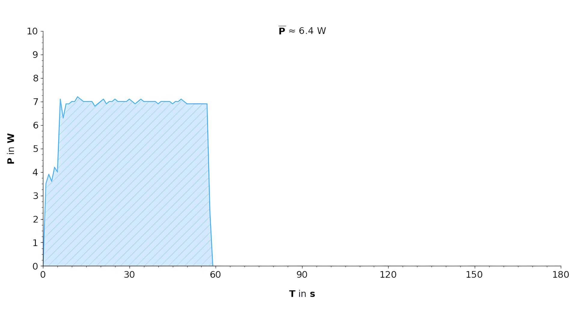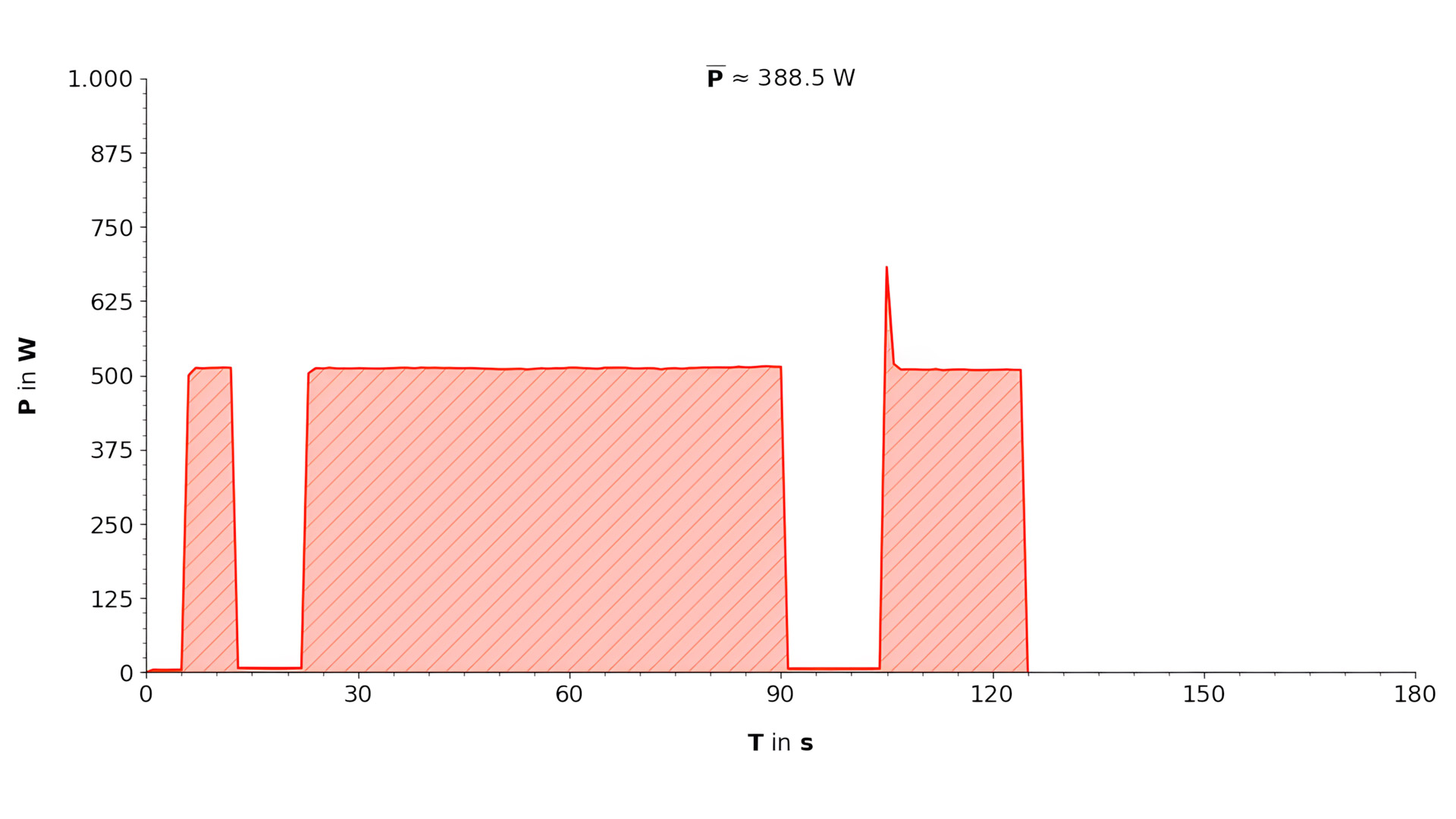 | Stromverbrauch des Schäumvorgangs mit 120 ml Vollmilch (P∅ bzw. Pmax d. Schäumens) |