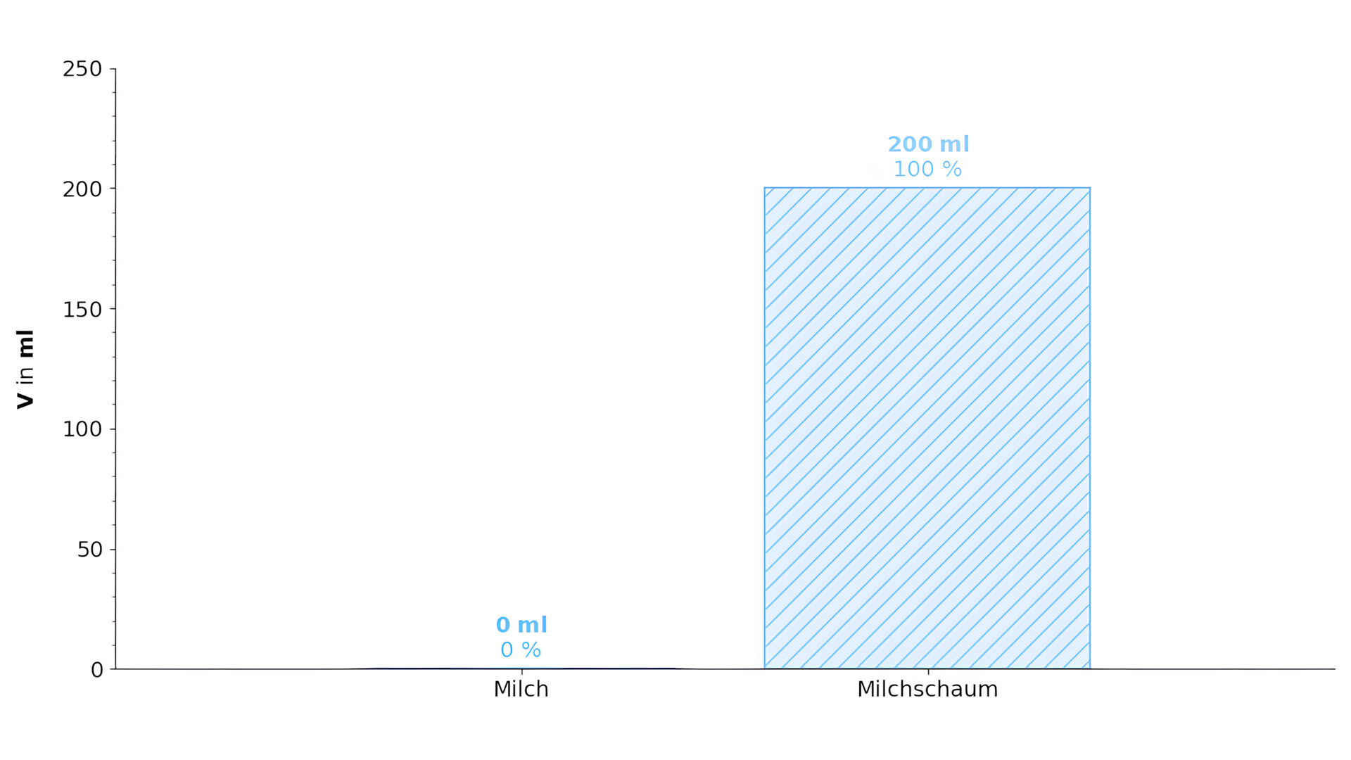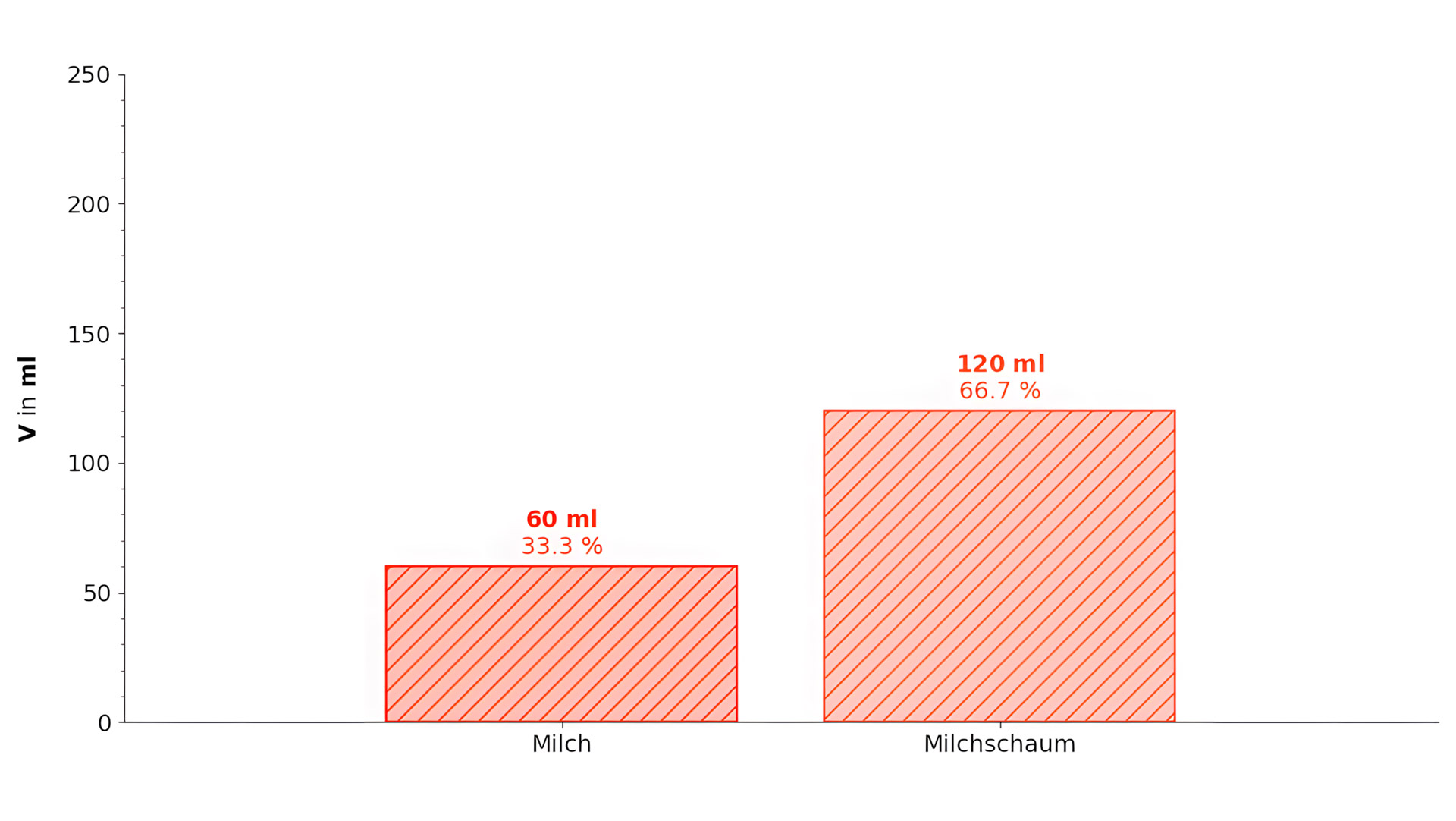 | Volumen von Milch bzw. Milchschaum nach dem Ende des Erwärm- & Schäumvorgang mit 120 ml Vollmilch (V∅ v. Milch & Milchschaum) |