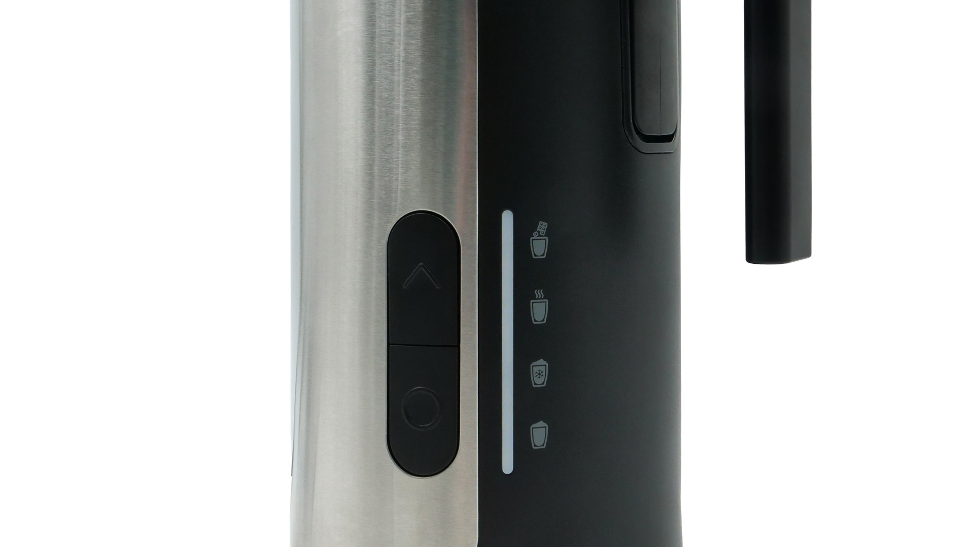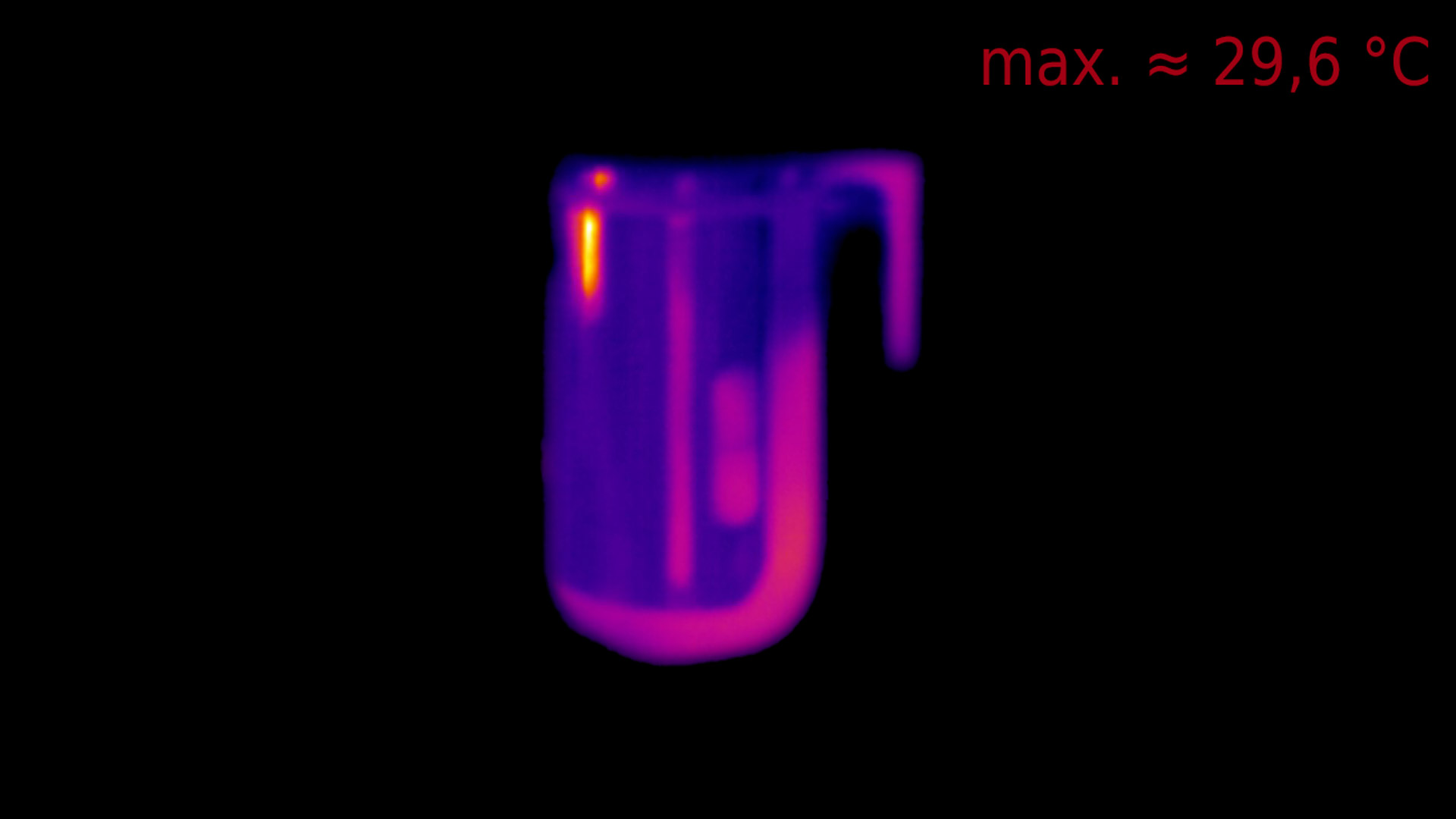 Soll der Milchaufschäumer die Milch heiß aufschäumen, so werden auch die metallischen Wände des Modells nur geringfügig warm: Wir haben bspw. im unmittelbaren Nachgang des heißen Aufschäumens Temperaturpeaks von ≈ 29,6 °C erhoben; dank der doppelwandigen Konstruktion kann sich hier wirklich niemand verbrennen.
