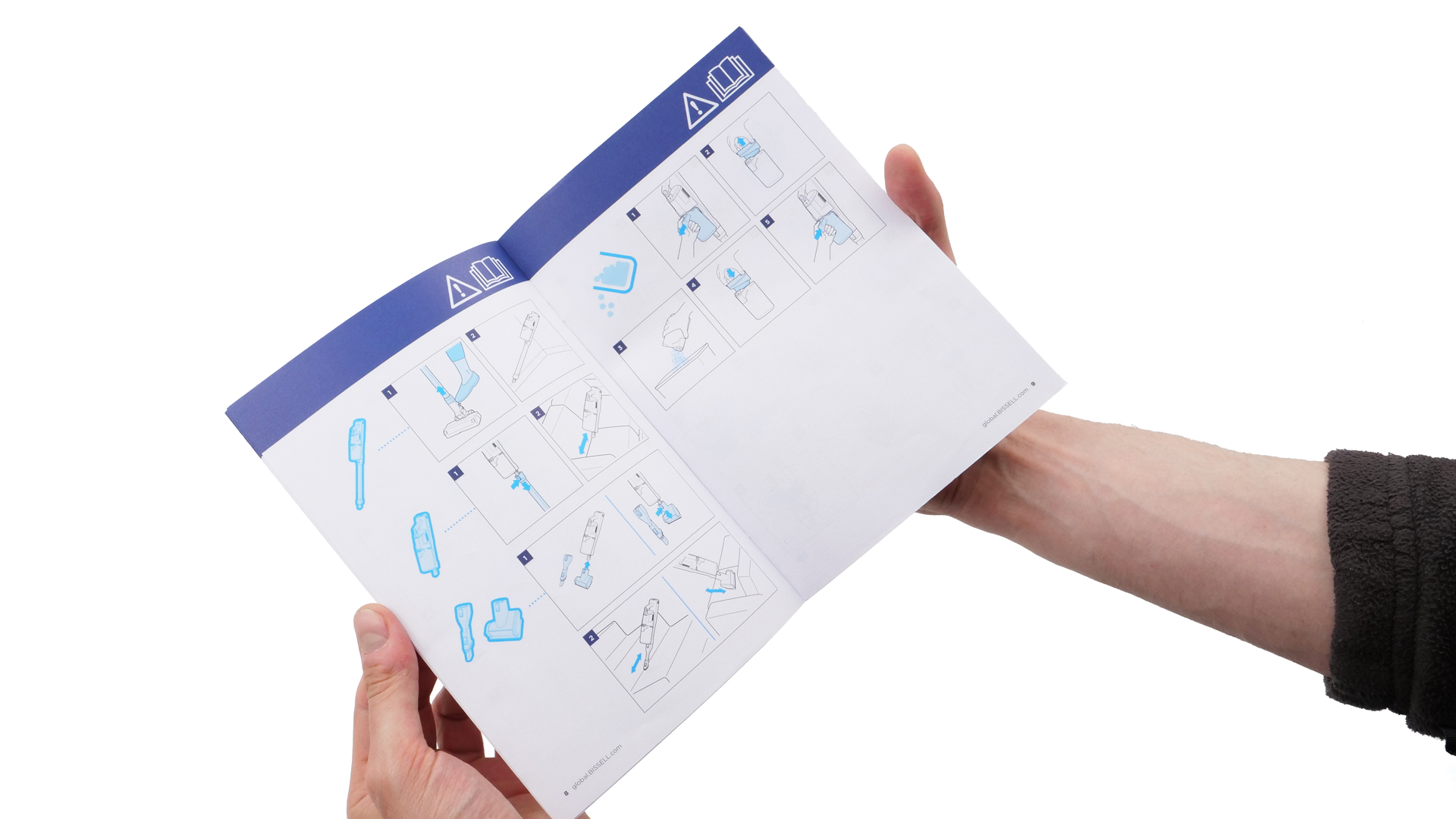 Aufgrund des stark reduzierten Funktionsspektrums des Modells sowie der rundum intuitiven Bedienung wird man kaum einmal einen Blick in die Bedienungsanleitung werfen müssen. Zieht man sie schließlich trotzdem zurate, findet man hier Antworten auf die meisten Fragen, die mit dem Gebrauch des Modells verknüpft sind. Etwas Zeit, um die gesuchte Information zu finden, braucht es jedoch allemal, da die Anleitung beinahe ausschließlich aus Graphiken besteht; obwohl diese hochwertig und sogar mehrfarbig gestaltet sind, muss man sich in ihnen erst einmal orientieren. Dass die Erläuterungen zu mehreren verschiedenen Modellen parallel erfolgen, sorgt zumindest anfänglich für Verwirrung. Trotzdem kann die Bedienungsanleitung alles in allem überzeugen und versetzt jeden, der sich mit ihr befasst, in die Lage, den Akku-Staubsauger vollumfänglich richtig zu verwenden; auch ausgesprochen nützliche Hinweise zur Reinigung und zur Wartung werden gegeben.