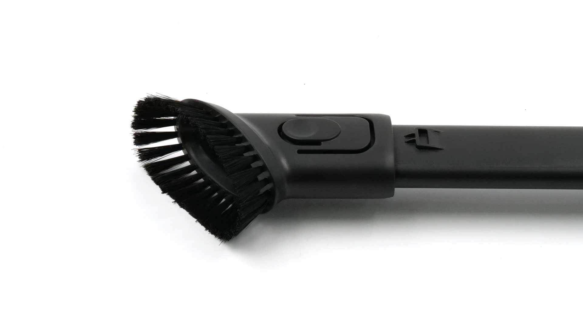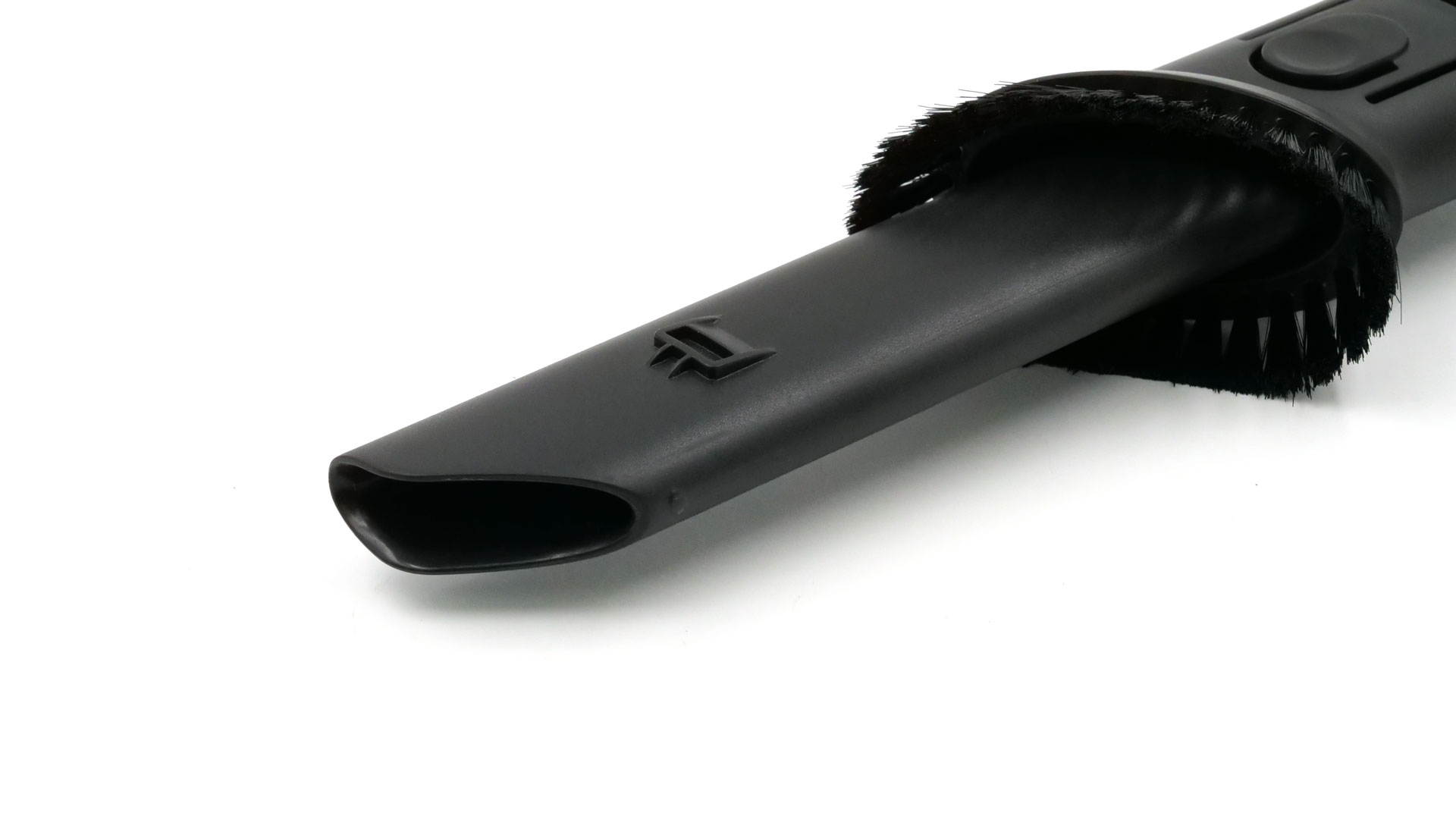 Während der Fußbodenreinigung dürfte in den meisten Fällen die Fußbodendüse zur Anwendung kommen. Sie ist ≈ 26,0 cm breit und verfügt über eine rotierende Walzenrolle. Diese rotiert im Betrieb ununterbrochen, wobei ihre Borsten Verschmutzungen vom Untergrund und sogar aus dem Flor von Teppichen lösen: Folglich empfiehlt sich die Fußbodendüse für alle Bodenarten gleichermaßen; selbst Parkett kann man mit ihr absaugen, ohne dass es verkratzt würde. Eine Besonderheit stellt der Schieberegler an der Oberseite dar: Über ihn lässt sich die Düse an die Größe der betreffenden Schmutzpartikel anpassen; andernfalls würde es bspw. schnell dazu kommen, dass grobe Teilchen vor der Düse hergeschoben, aber nicht aufgesaugt werden.