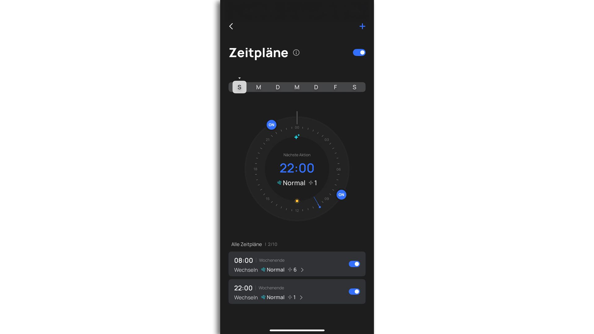 | Modusspektrum | AUTO; CUSTOM (nur per App); NATURAL (nur per App); NORMAL; SLEEP (nur per App); TURBO |