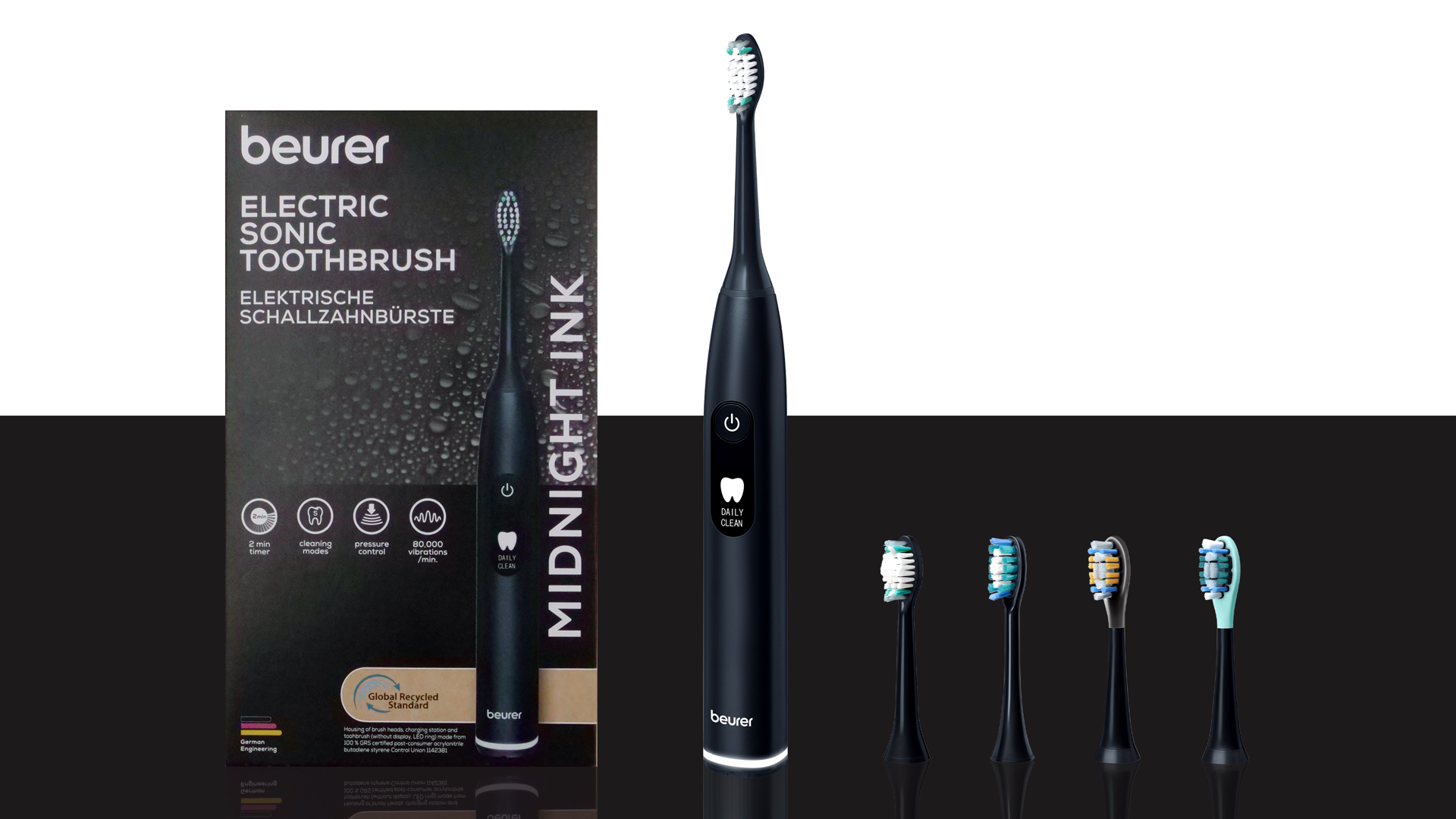 Elektrische Schallzahnbürsten finden sich mittlerweile in vielen Badezimmern hierzulande – und das aus durchweg gutem Grund: Dadurch dass ihre Borsten mit hoher Geschwindigkeit vibrieren, lässt sich mit ihnen nämlich ein sehr viel besseres Reinigungsergebnis erzielen als mit einer Handzahnbürste; Plaque & Co. werden in kurzer Zeit nahezu vollständig von den Zähnen abgetragen. Darüber hinaus bieten viele Schallzahnbürsten gewisse Besonderheiten, welche die Arbeit mit ihnen vereinfachen sowie effizienter machen sollen. Viele Modelle erinnern bspw. auch daran, wann es an der Zeit ist, mit der Reinigung eines anderen Mundbereichs fortzufahren; so wird sichergestellt, dass am Ende wirklich alle Zähne gleichmäßig geputzt werden. Das ist auch bei der Schallzahnbürste der Fall, die wir dieses Mal ausgiebig getestet haben: Wir sprechen von der SC 50 Midnight Ink von Beurer. Dieses seit etwa einem halben Jahr erhältliche Modell verfügt außerdem über viele weitere besondere Merkmale, die beeindruckend klingen: Zum Beispiel kann sein Bürstenkopf bis zu 80.000-mal in der Minute schwingen, was ein hervorragendes Reinigungsergebnis verspricht. Wie gut die Schallzahnbürste Zähne allerdings tatsächlich putzt und was es vor einem eventuellen Kauf über sie zu wissen gibt, lesen Sie in unserem ausführlichen Testbericht.