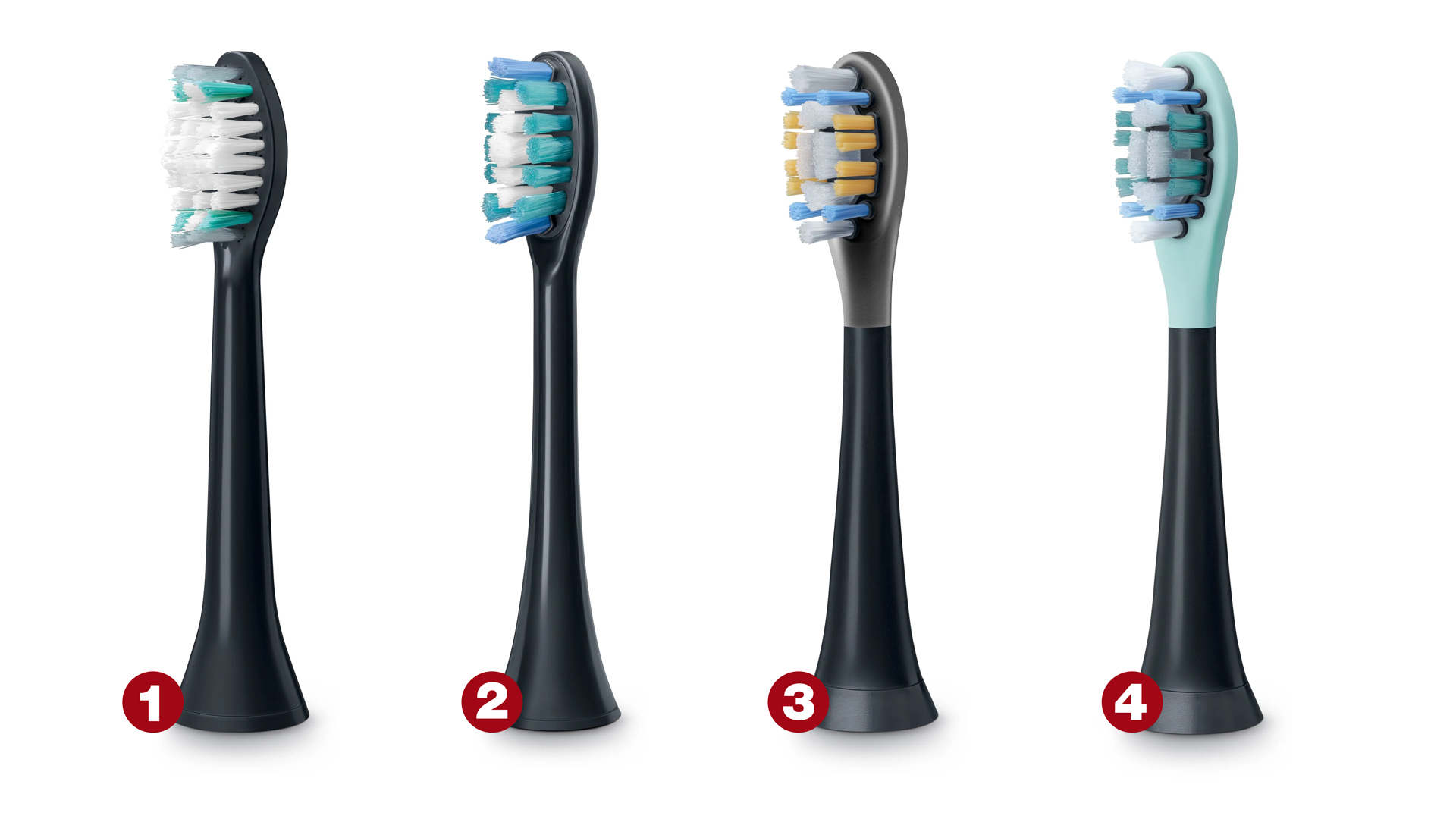 Im Lieferumfang sind zwei Bürstenköpfe vorhanden, die sich für verschiedene Zwecke eignen. Insgesamt lassen sich vier verschiedene Arten von Bürstenköpfen kaufen, die je auf eine Aufgabe spezialisiert sind.