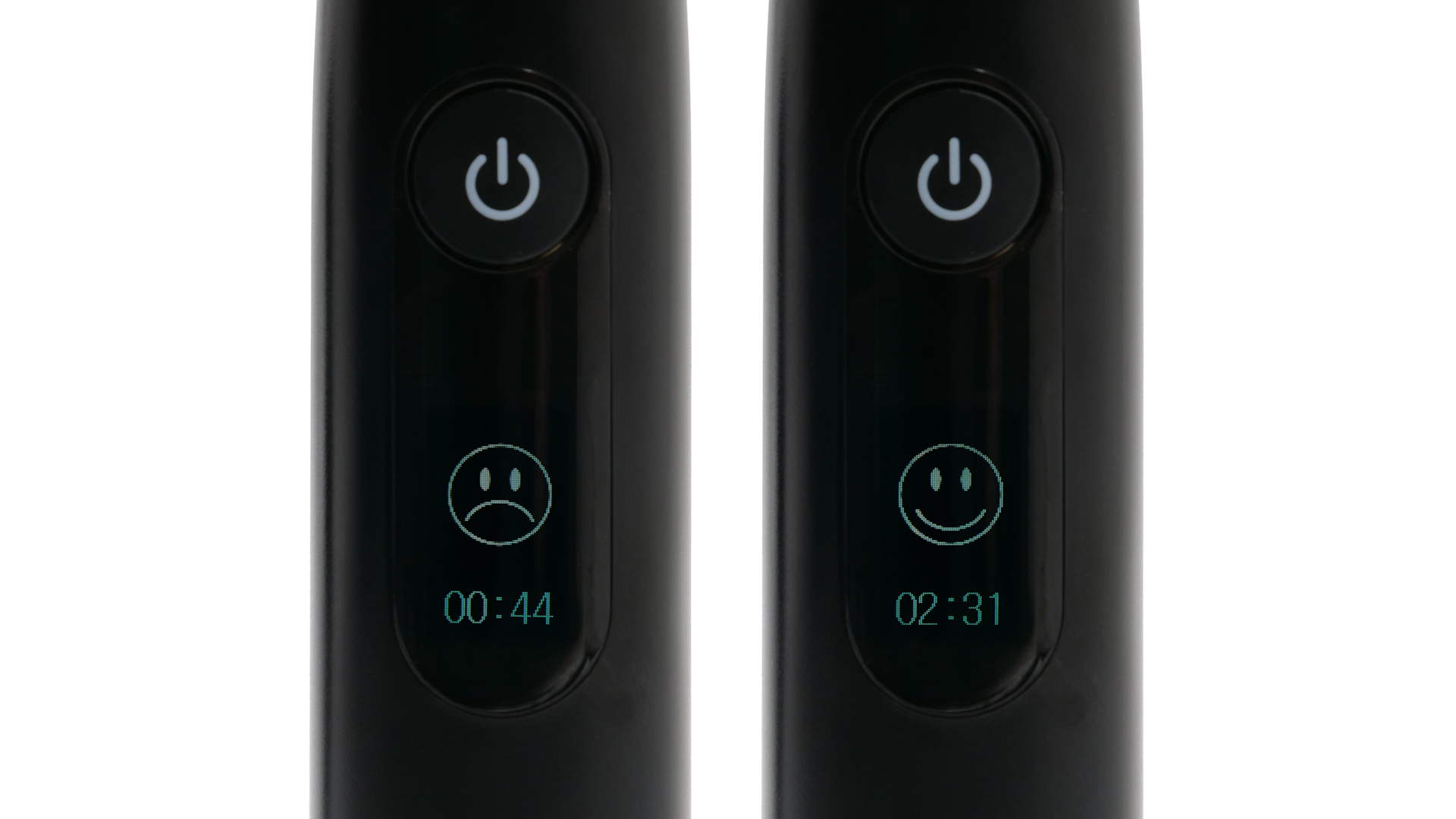 Nach dem Ausschalten zeigt das Display intuitiv verständlich an, ob man zu kurz geputzt hat oder nicht: Wenn man das Modell für weniger als ≈ 2 min verwendet hat, erscheint ein trauriger Smiley; hat man dagegen länger als ≈ 2 min geputzt, wird stattdessen ein lächelnder Smiley angezeigt.