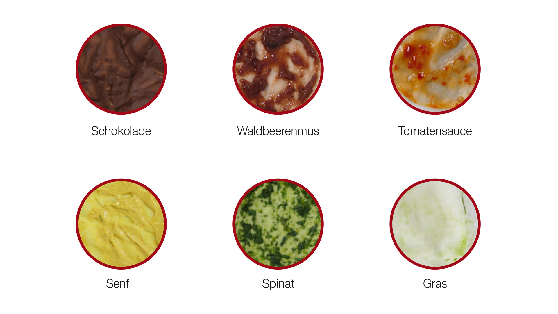 Wie wirksam die WF7S1247BW von Hisense waschen kann, veranschaulichen wir im Weiteren: Wir haben verschiedene Stellen weißer Textilien mit Spuren von Gras, Marmelade, Schokolade usw. versehen und diese Spuren ≈ 30 min ins Material der Textilien (100 % Baumwolle) einwirken lassen. Danach luden wir so viele der Textilien in die Trommel des Modells, dass ≈ 50 % des Trommelvolumens voll war. Wir ließen das Modell das Waschmittel per SMART DOSING von allein dosieren.